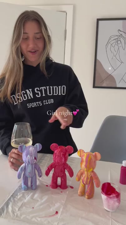 Bear Studios es un taller para en el que pintas y personaliczas tu propio oso decorativo desde casa. Te llega todo lo que necesitas: la figura, las pinturas, las herramientas y una guía fácil. No hace falta saber de arte; simplemente eliges tus colores, pintas y disfrutas del proceso.